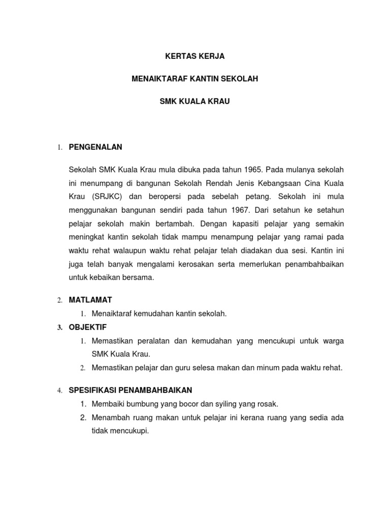 Kertas Kerja Penambahaikan Kantin 2014 Pdf